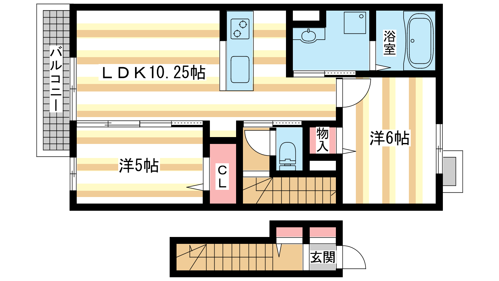 - LDK10.25帖、洋室6帖、洋室5帖