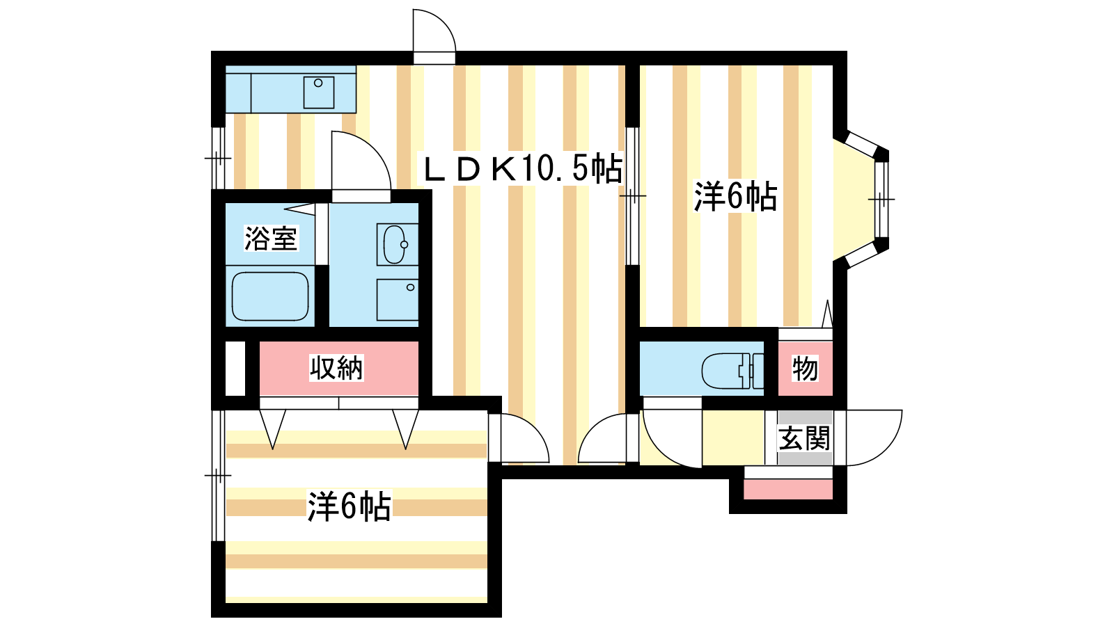 - 洋室6帖、洋室6帖、LDK10.5帖