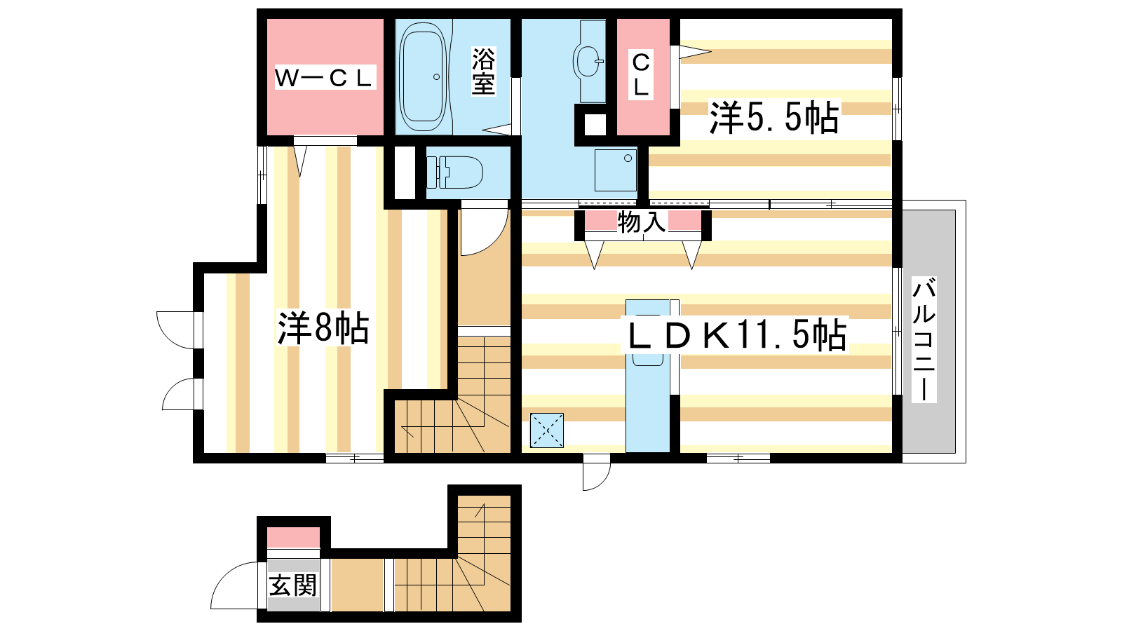 - LDK11.5帖、洋室8帖、洋室5.5帖
