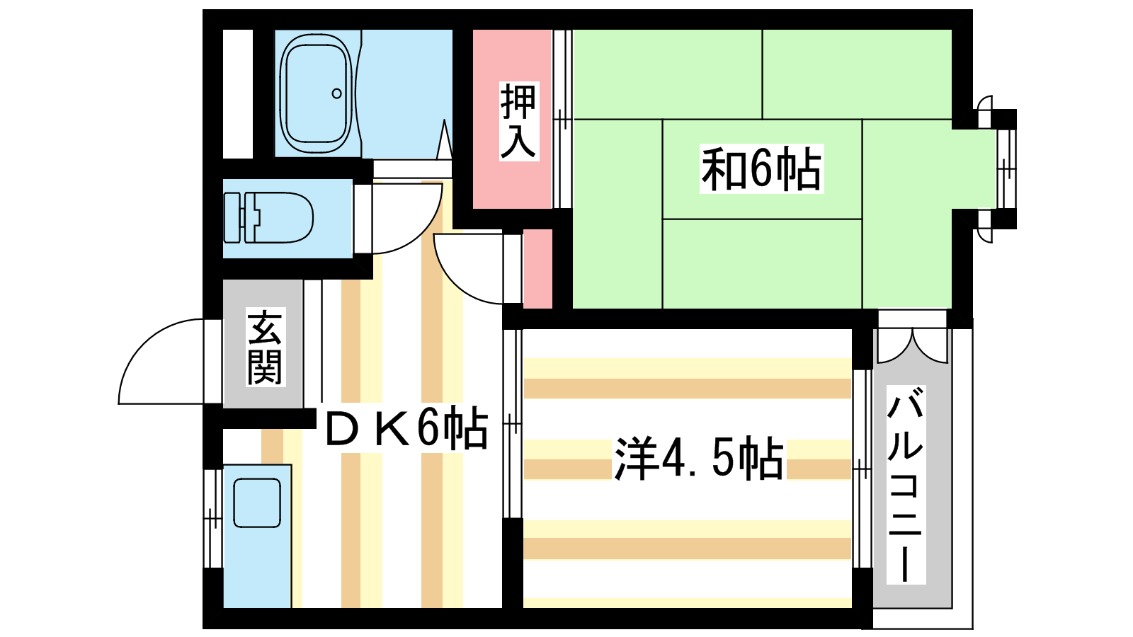 - 洋室4帖、和室6帖、DK6帖
