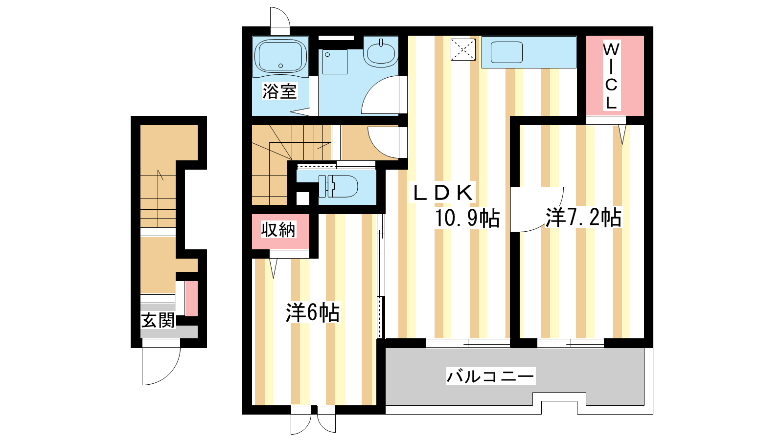 - LDK10.9帖、洋室7.2帖、洋室6帖