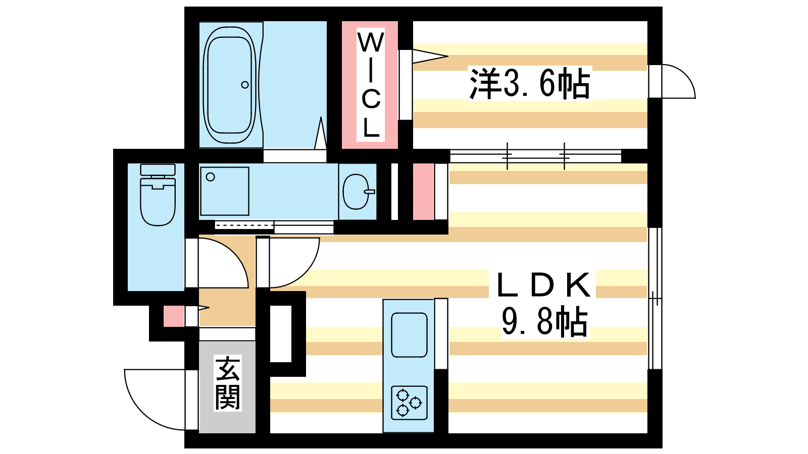 - LDK9.8帖、洋室3.6帖