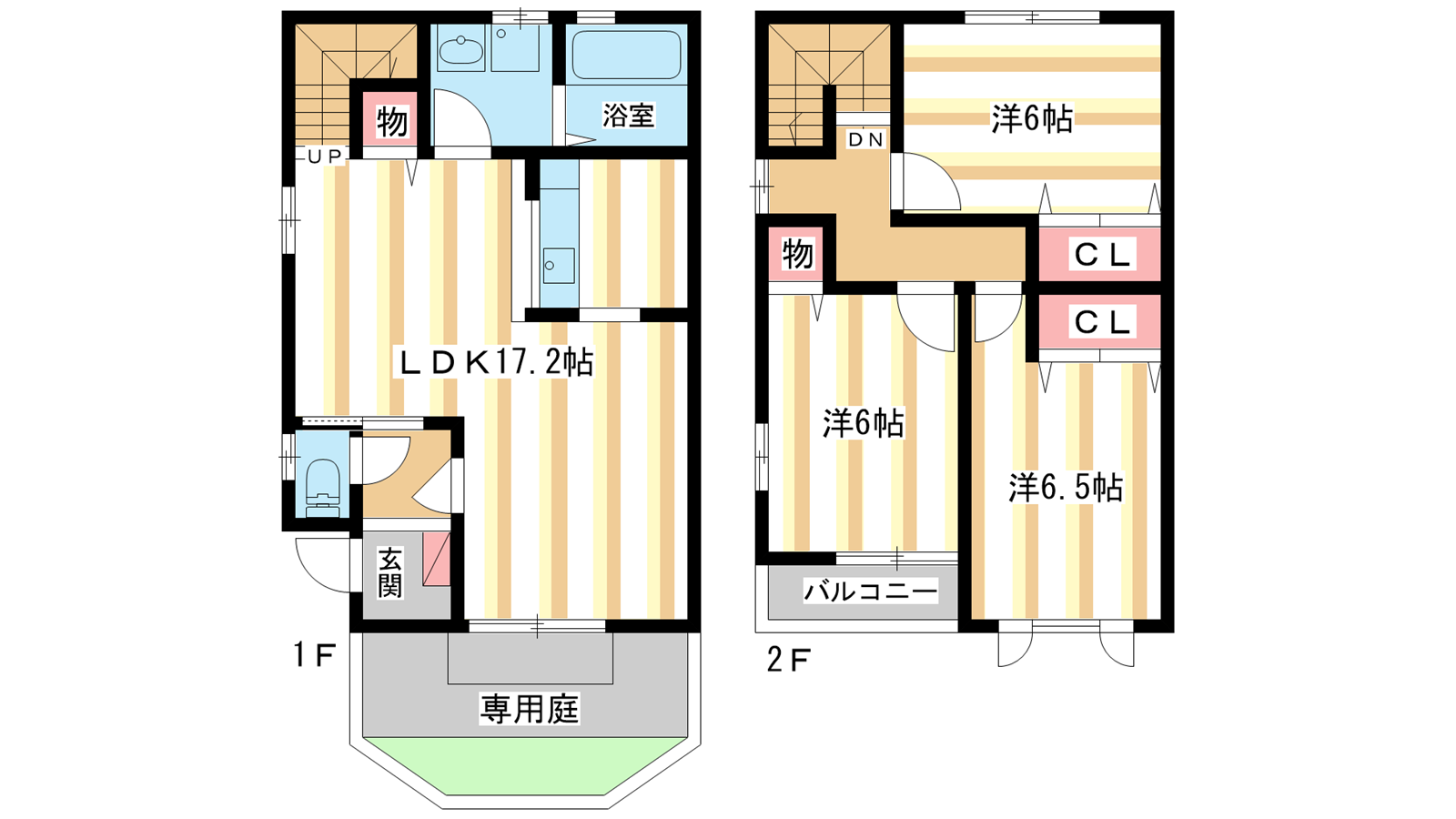 - 洋室6.5帖、洋室6帖、洋室6帖、LDK17.2帖