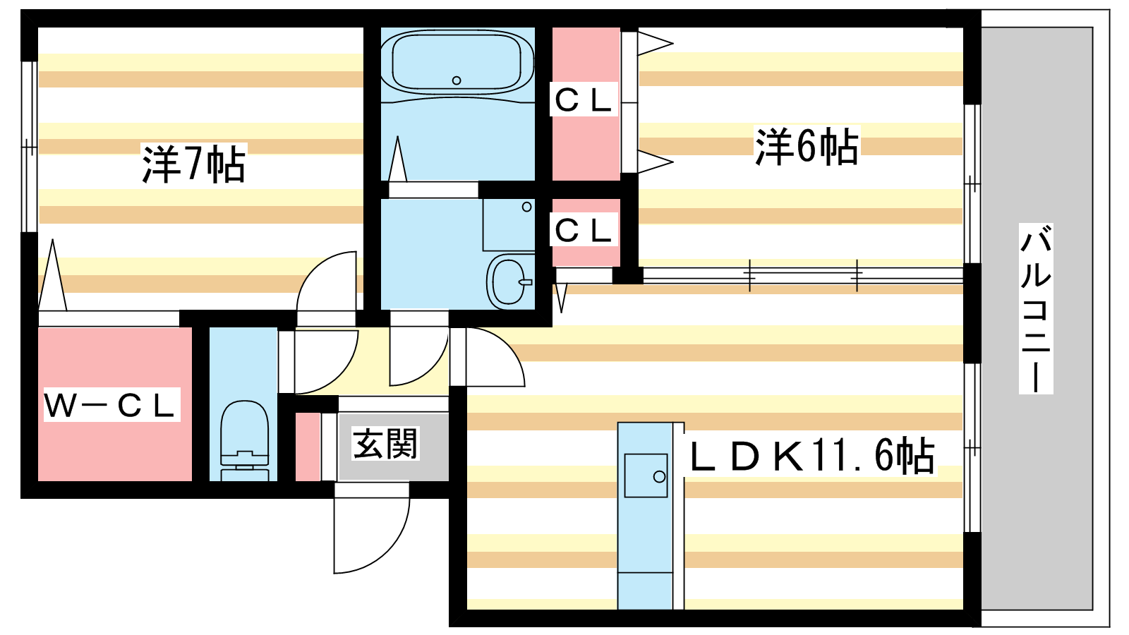 - 洋室7帖、洋室6帖、LDK11.6帖