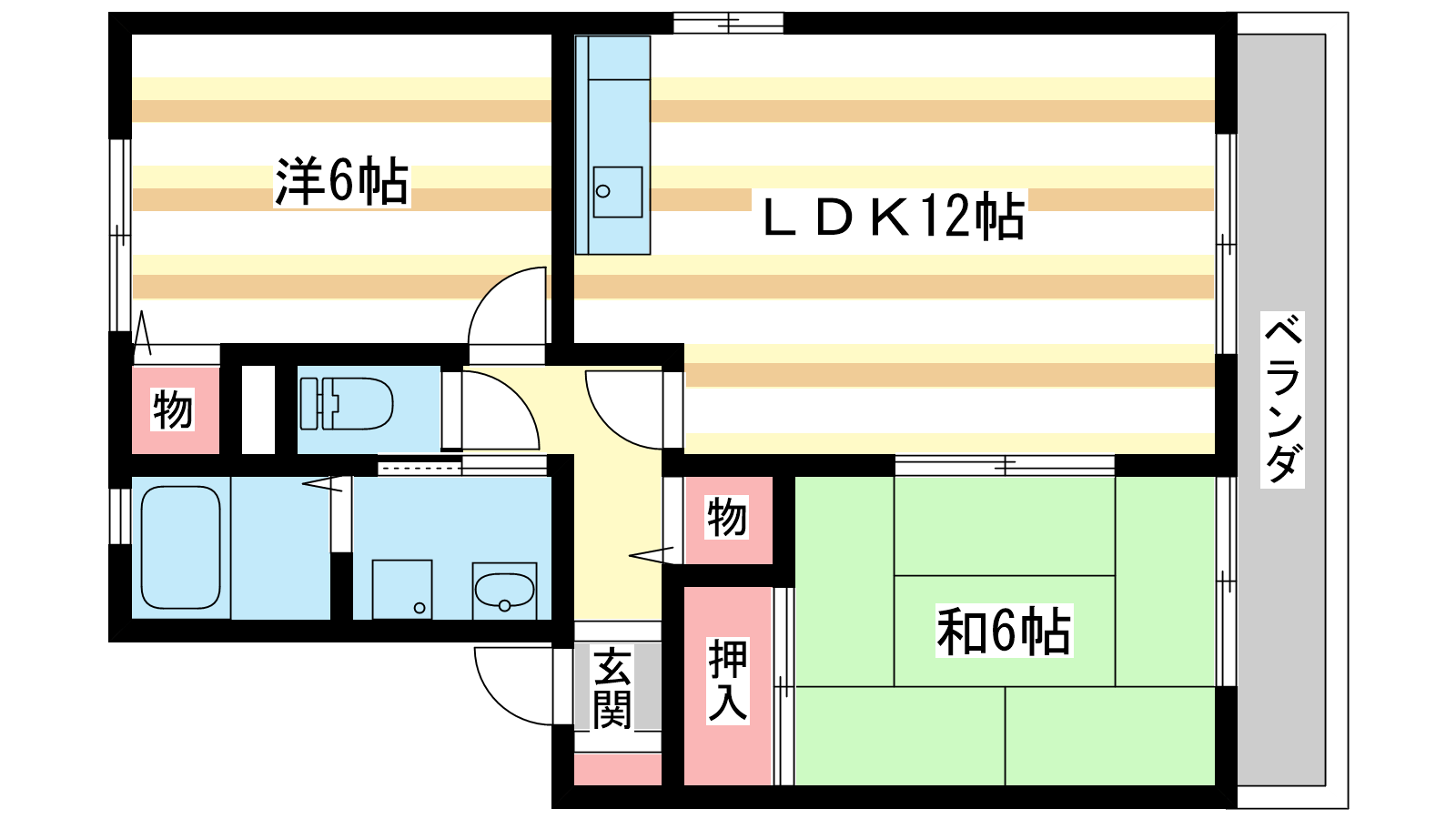 - 和室6帖、洋室6帖、LDK12帖