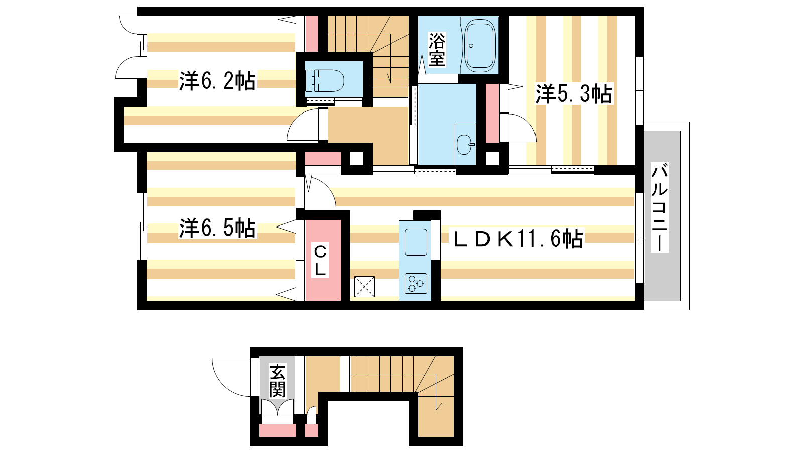 - LDK11.6帖、洋室6.5帖、洋室6.2帖、洋室5.3帖