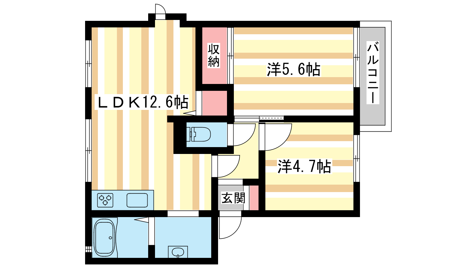 - LDK12.6帖、洋室5.6帖、洋室4.7帖