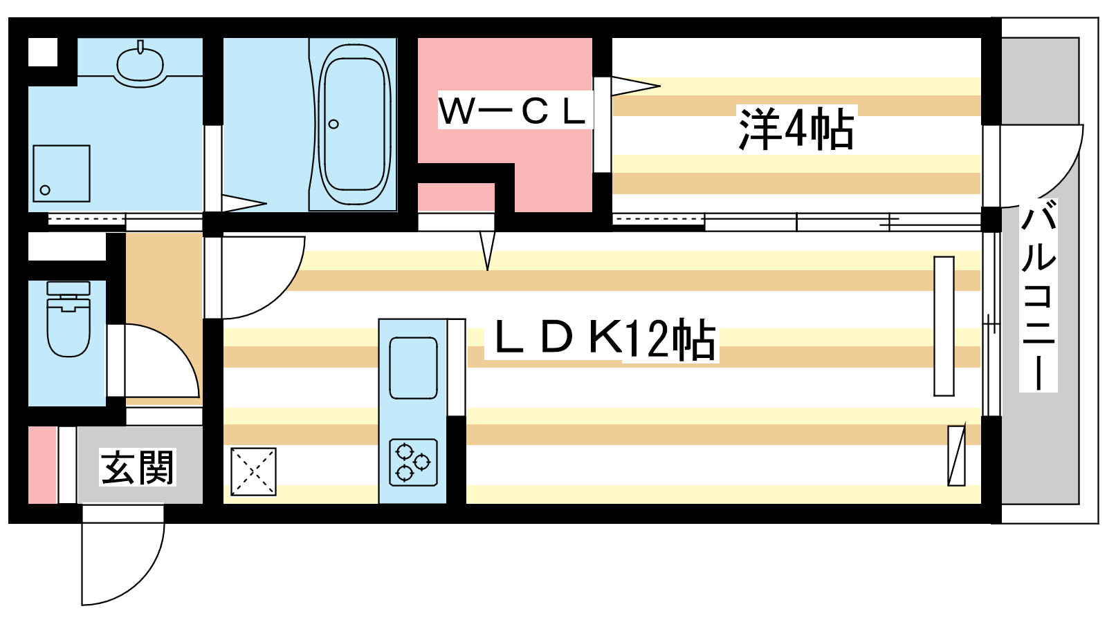 - LDK12帖、洋室4帖
