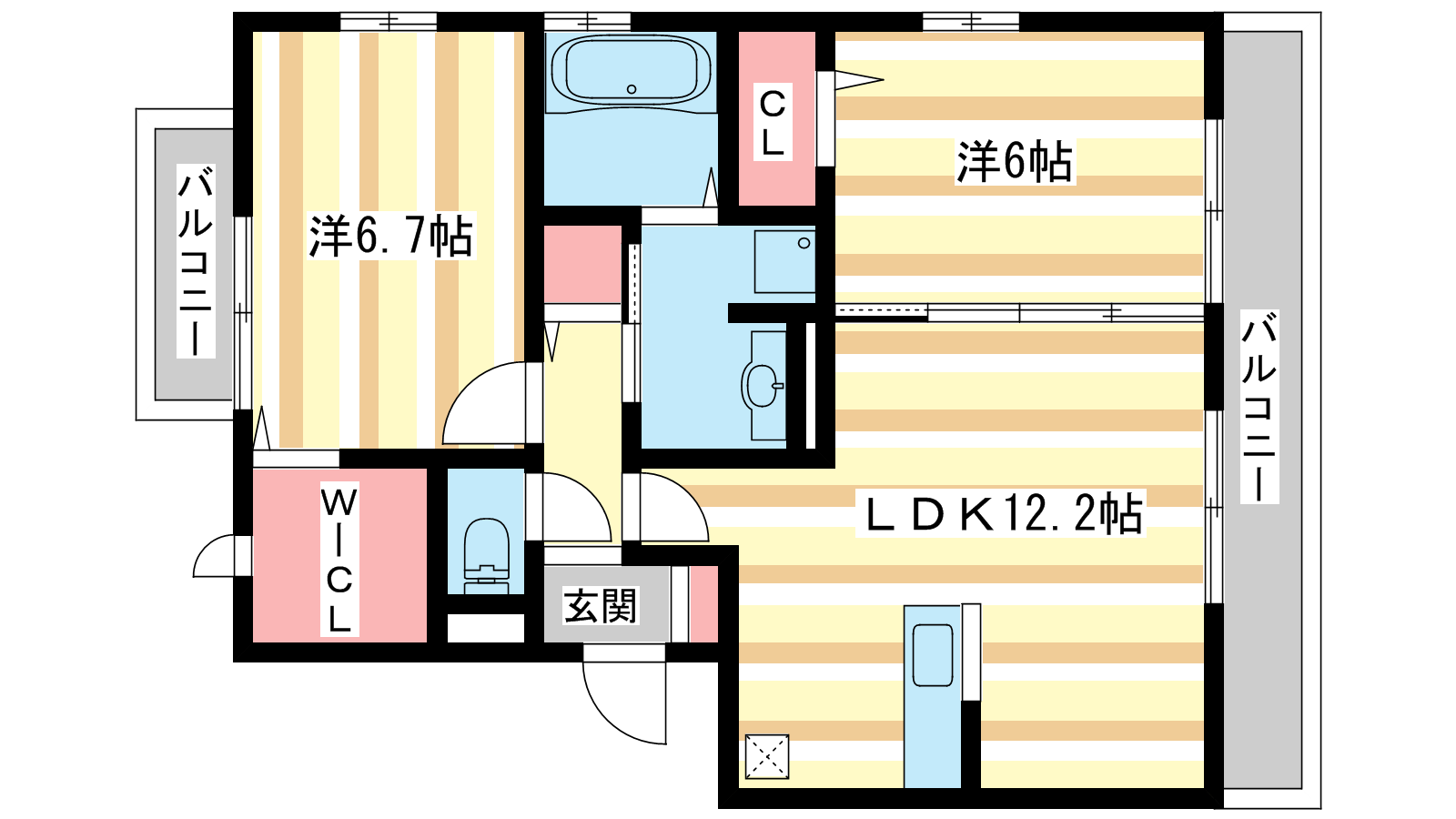- 洋室6帖、洋室6.75帖、LDK12.75帖