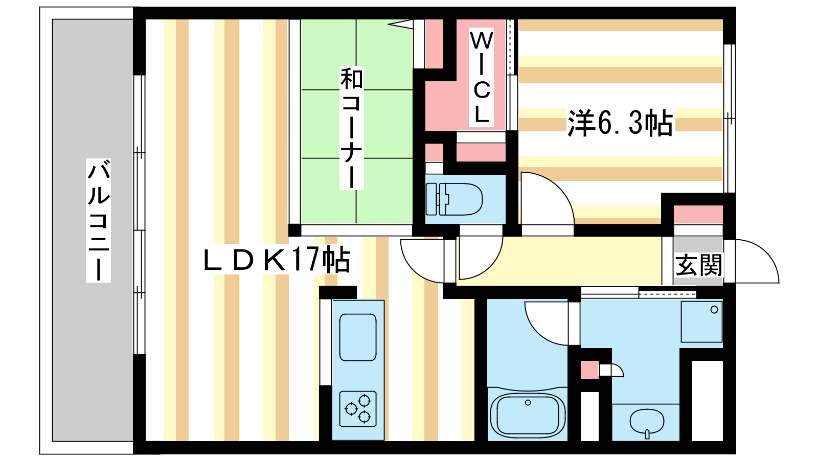 - LDK17帖、洋室6.3帖