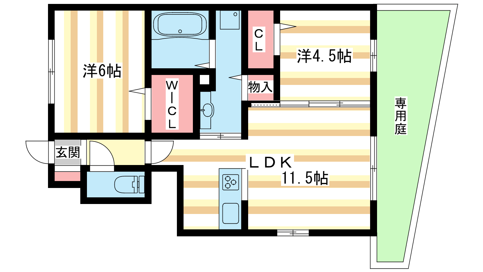 - 洋室6帖、洋室4.5帖、LDK11.5帖
