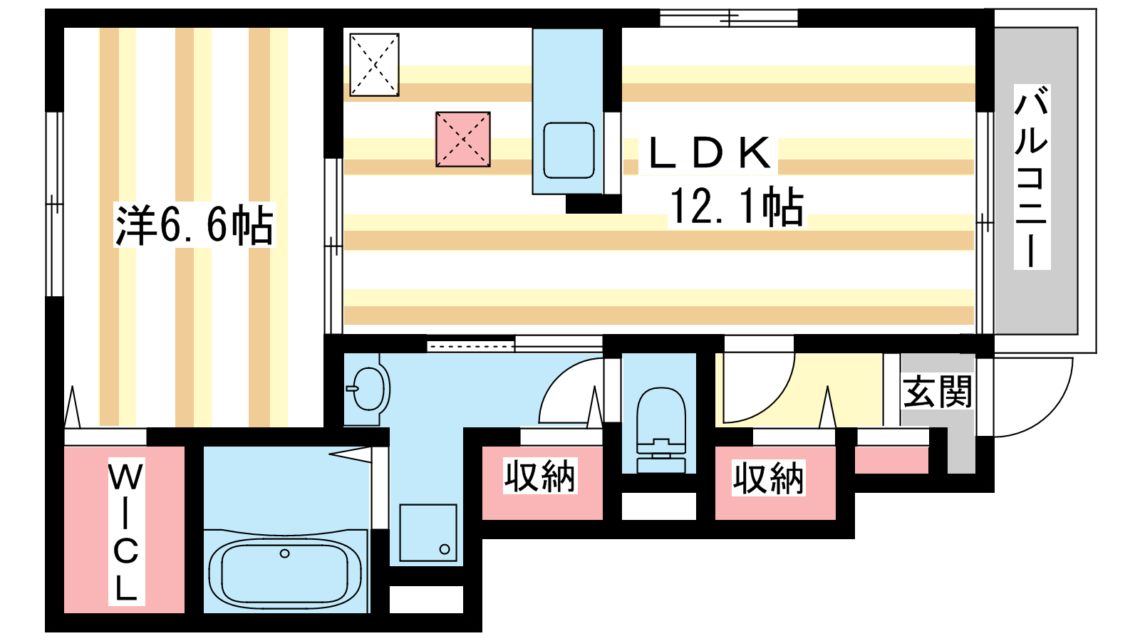 - LDK12.1帖、洋室6.6帖