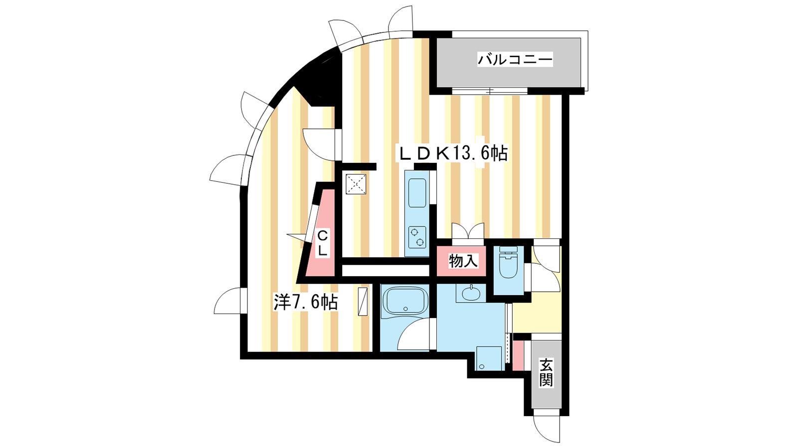- LDK13.6帖、洋室7.6帖