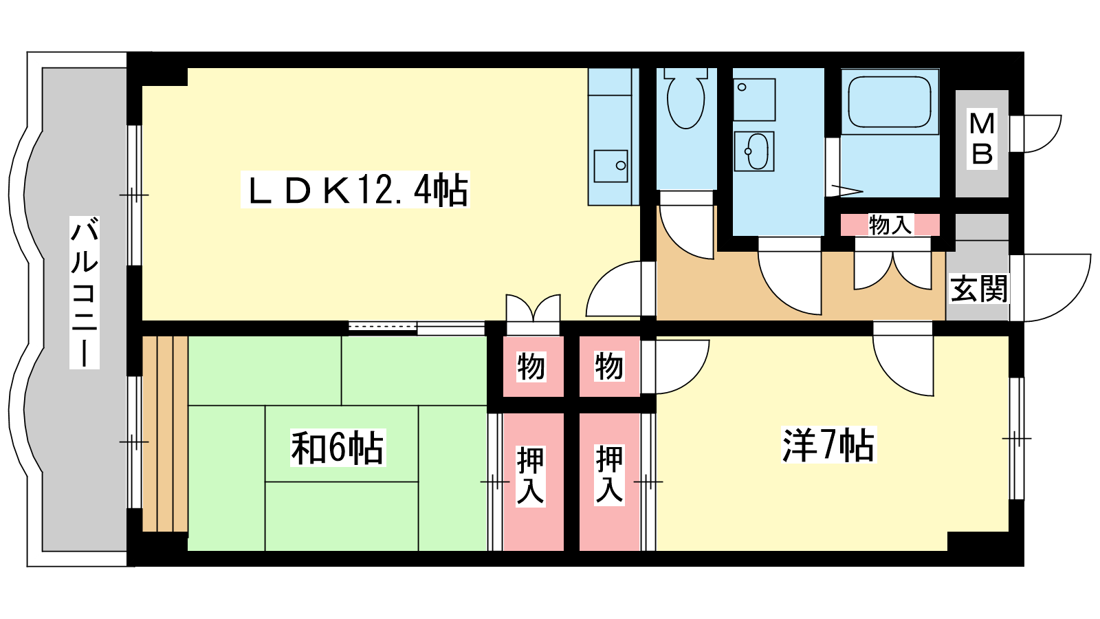- LDK12.4帖、洋室7帖、和室6帖
