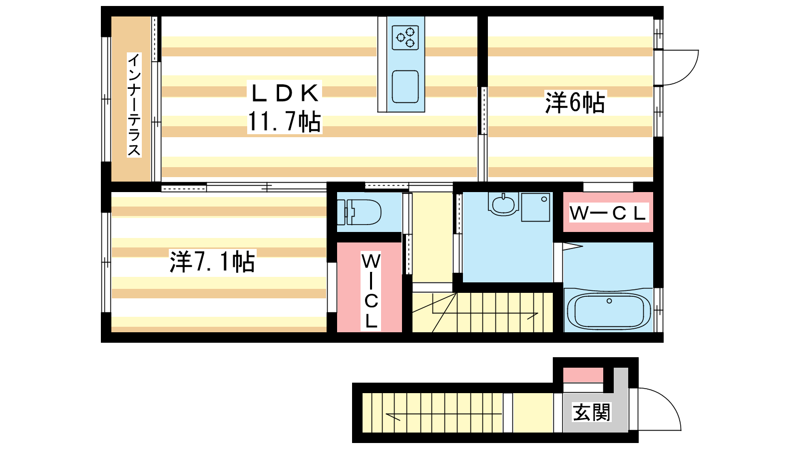 - LDK11.7帖、洋室7.1帖、洋室6帖