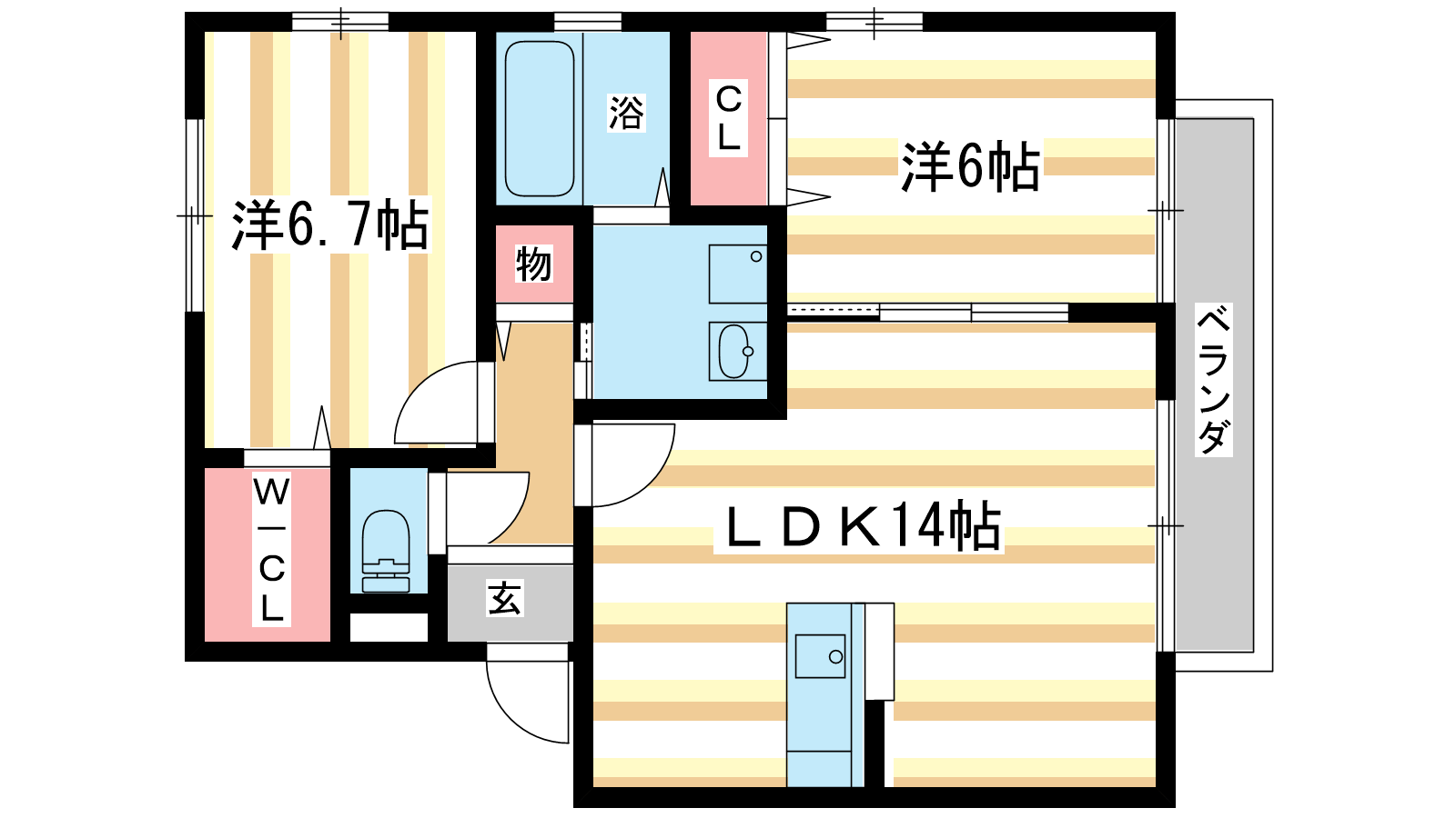 - 洋室6.7帖、洋室6帖、LDK14帖