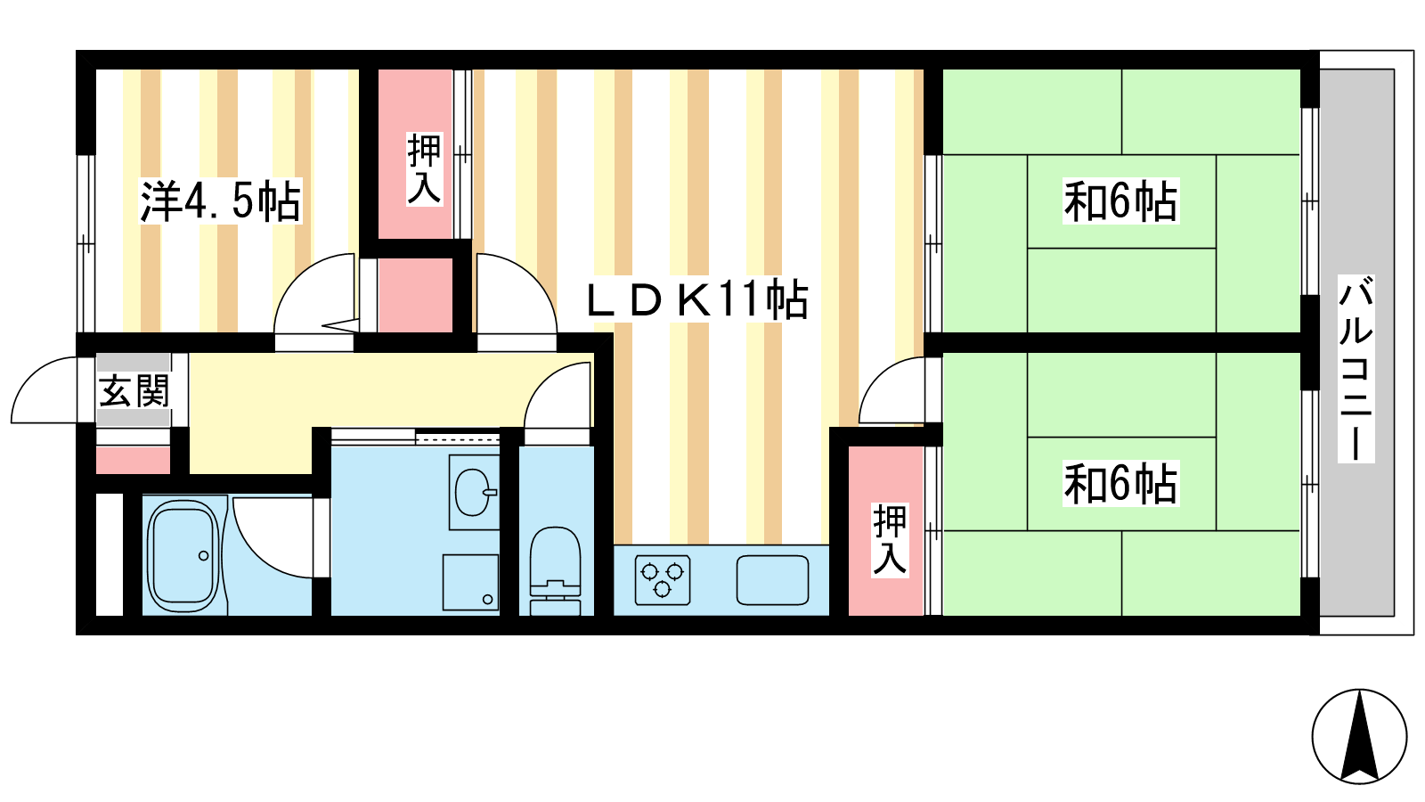 - 和室6帖、和室6帖、LDK11帖、洋室4.5帖