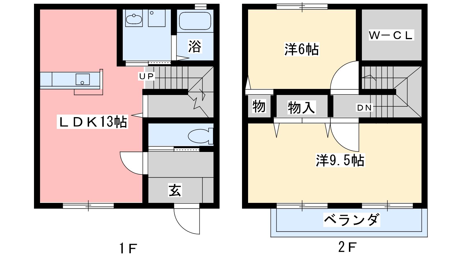 - 洋室9.5帖、洋室6帖、LDK13帖