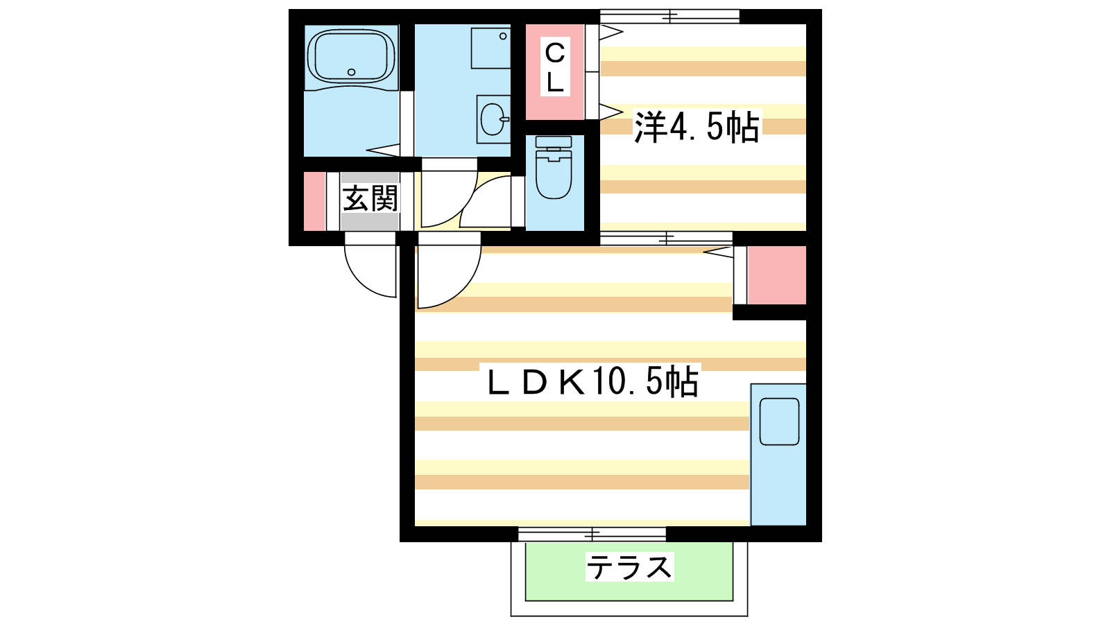 - 洋室4.5帖、LDK10.5帖