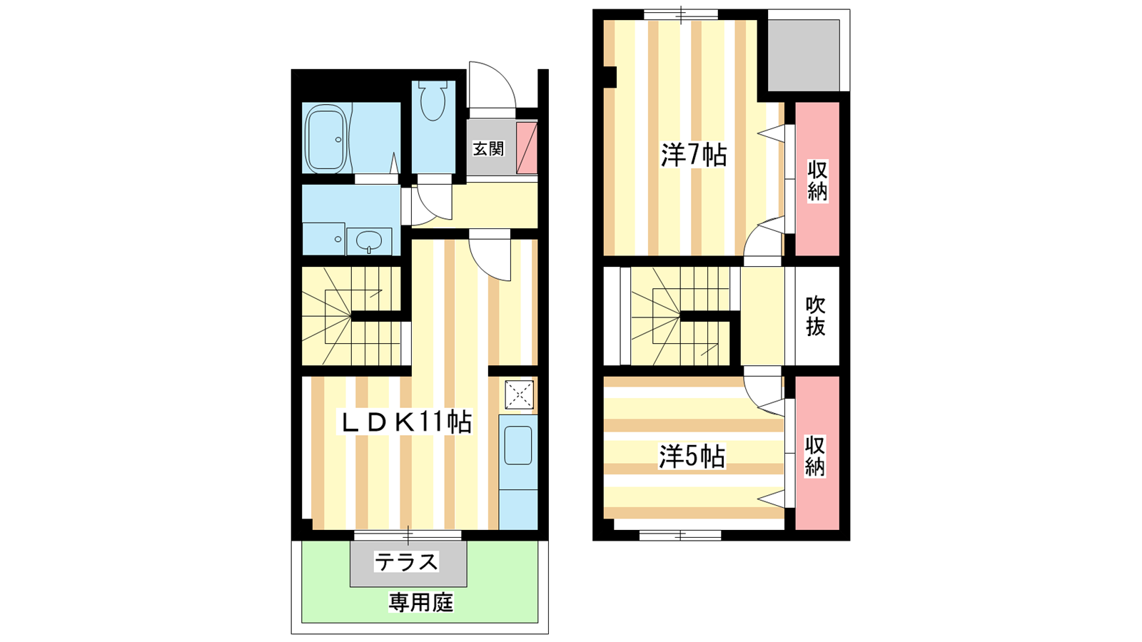 - 洋室7帖、洋室5帖、LDK11帖