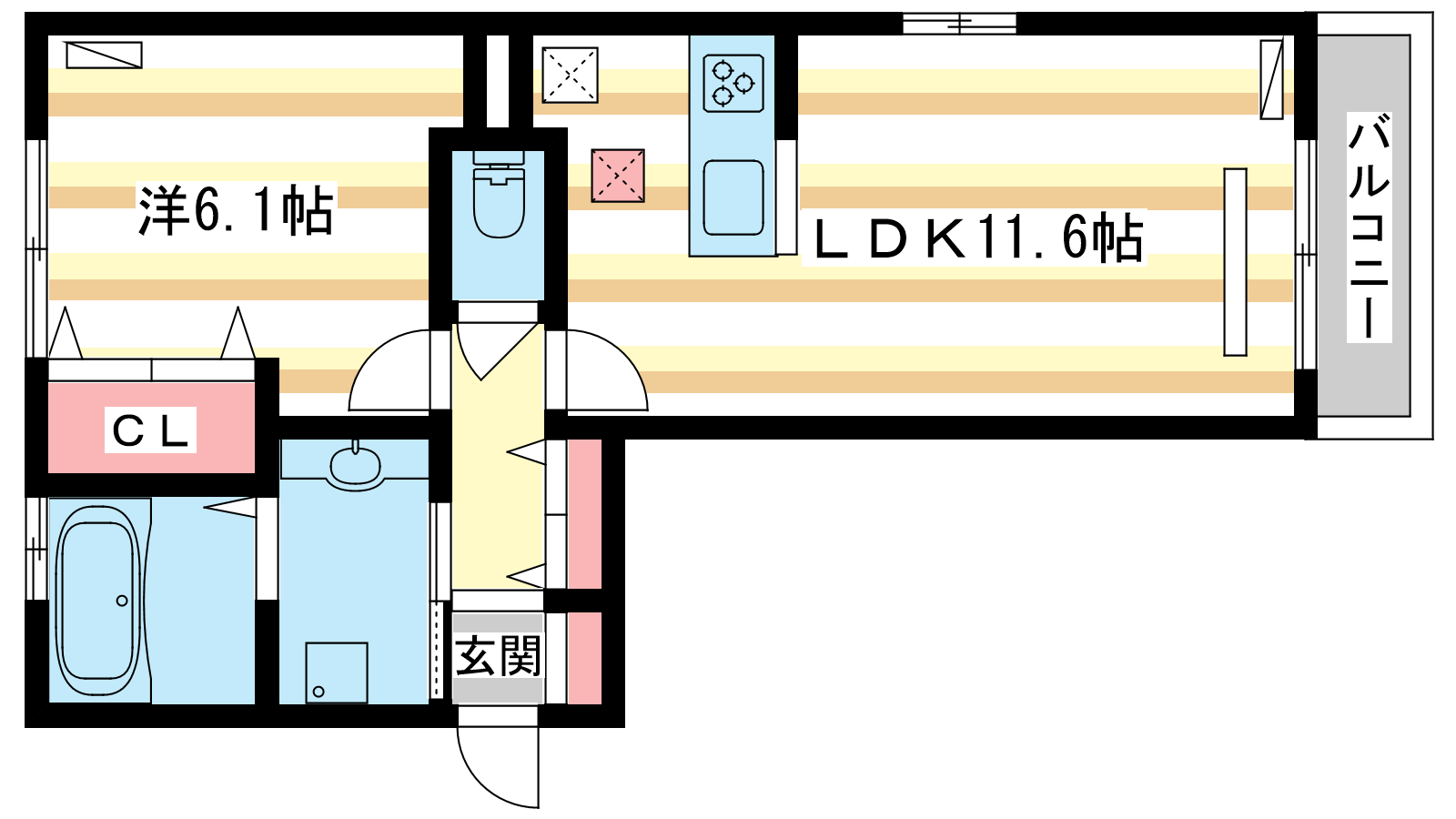 - LDK11.6帖、洋室6.1帖