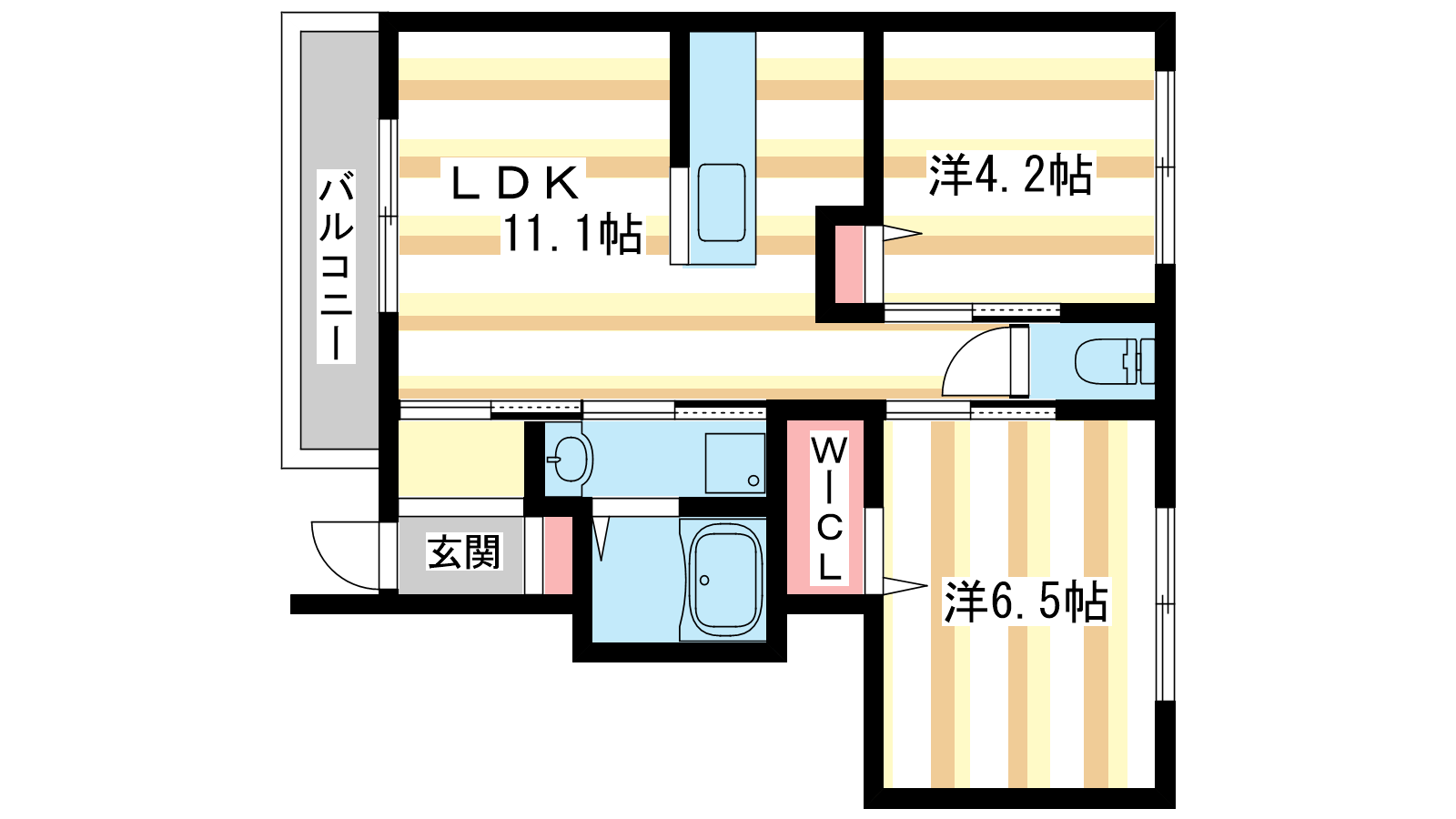 - LDK11.1帖、洋室6.5帖、洋室4.2帖