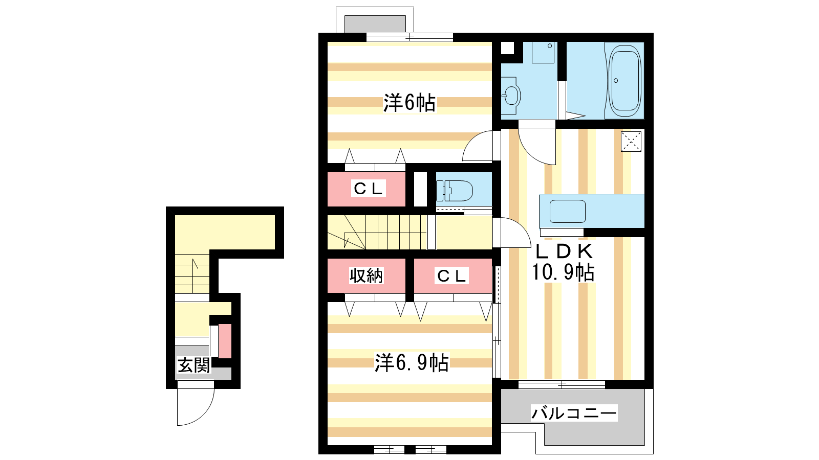 - LDK10.9帖、洋室6.9帖、洋室6帖