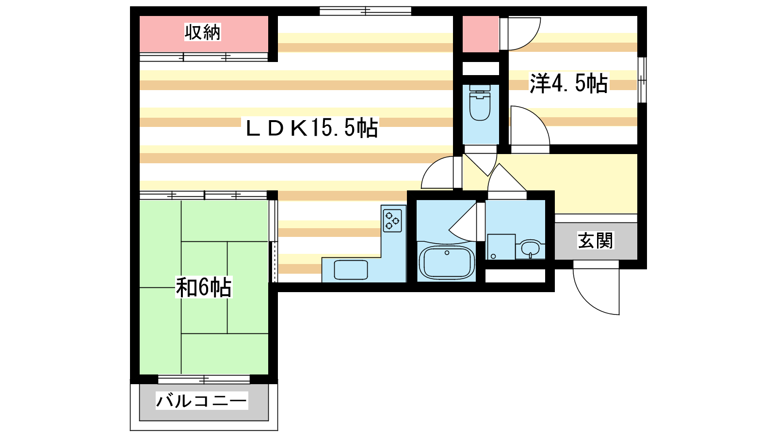 - LDK15.5帖、和室6帖、洋室4.5帖