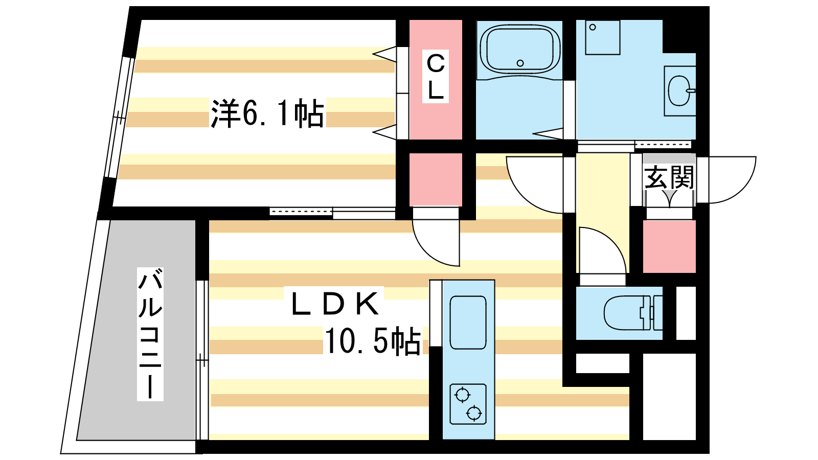 - LDK10.5帖、洋室6.1帖
