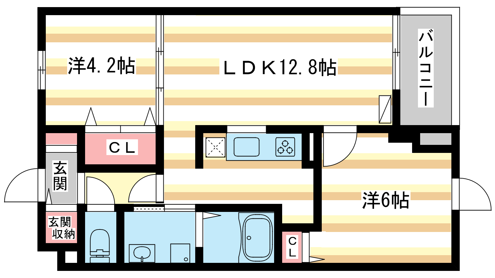 - LDK12.8帖、洋室6帖、洋室4.2帖