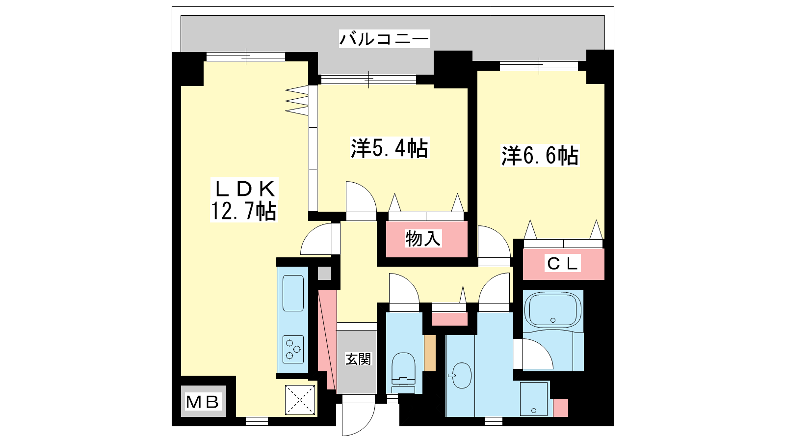 - LDK12.7帖、洋室6.6帖、洋室5.4帖