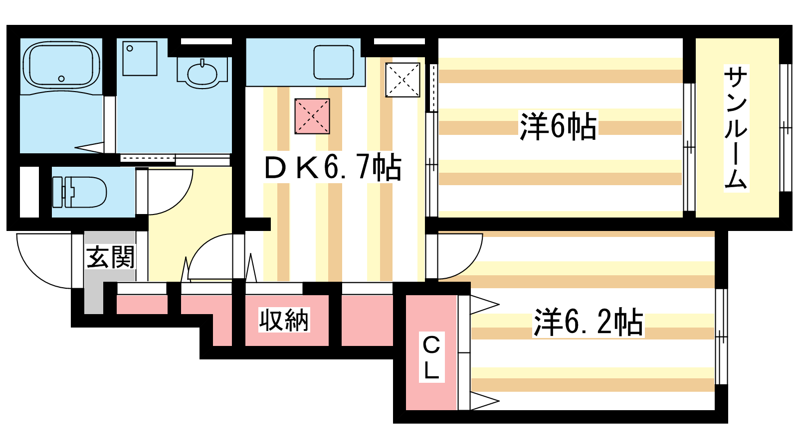 - DK6.7帖、洋室6.2帖、洋室6帖