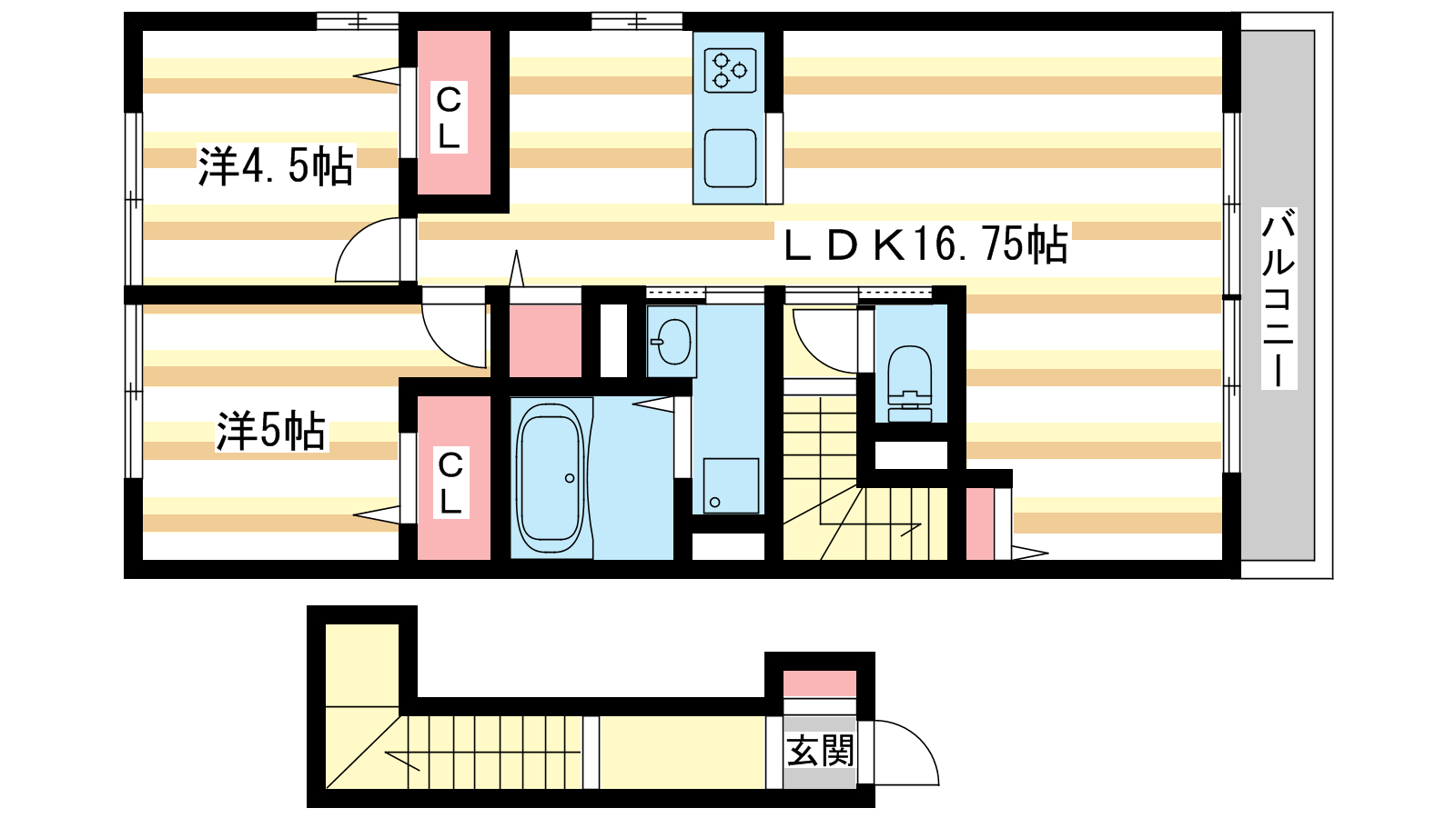- LDK16.75帖、洋室5帖、洋室4.5帖