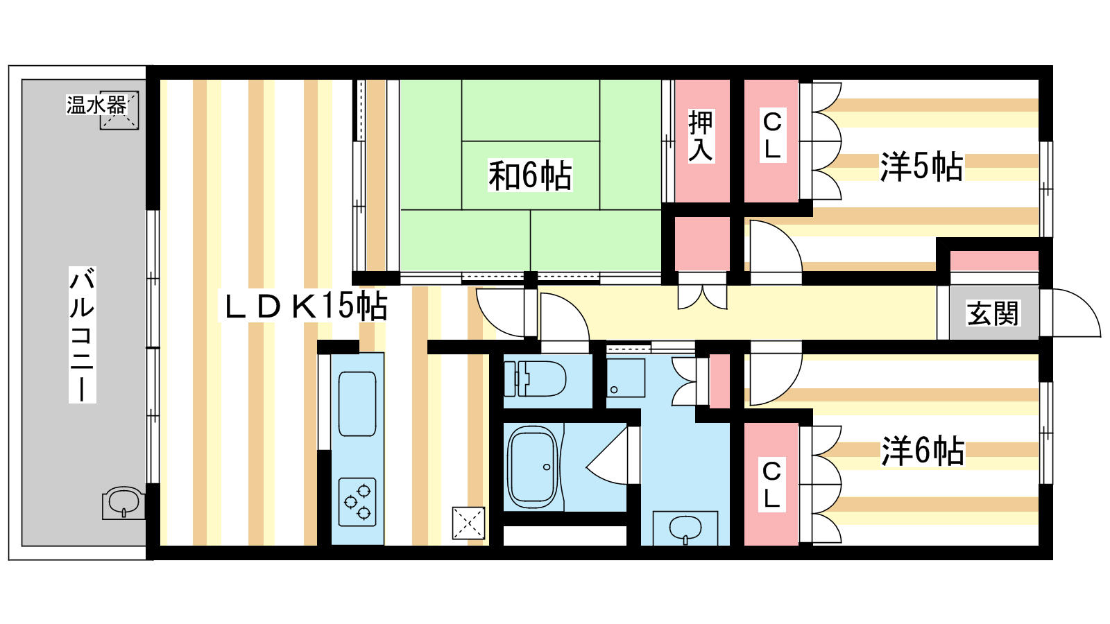- LDK15帖、洋室6帖、洋室5帖、和室6帖