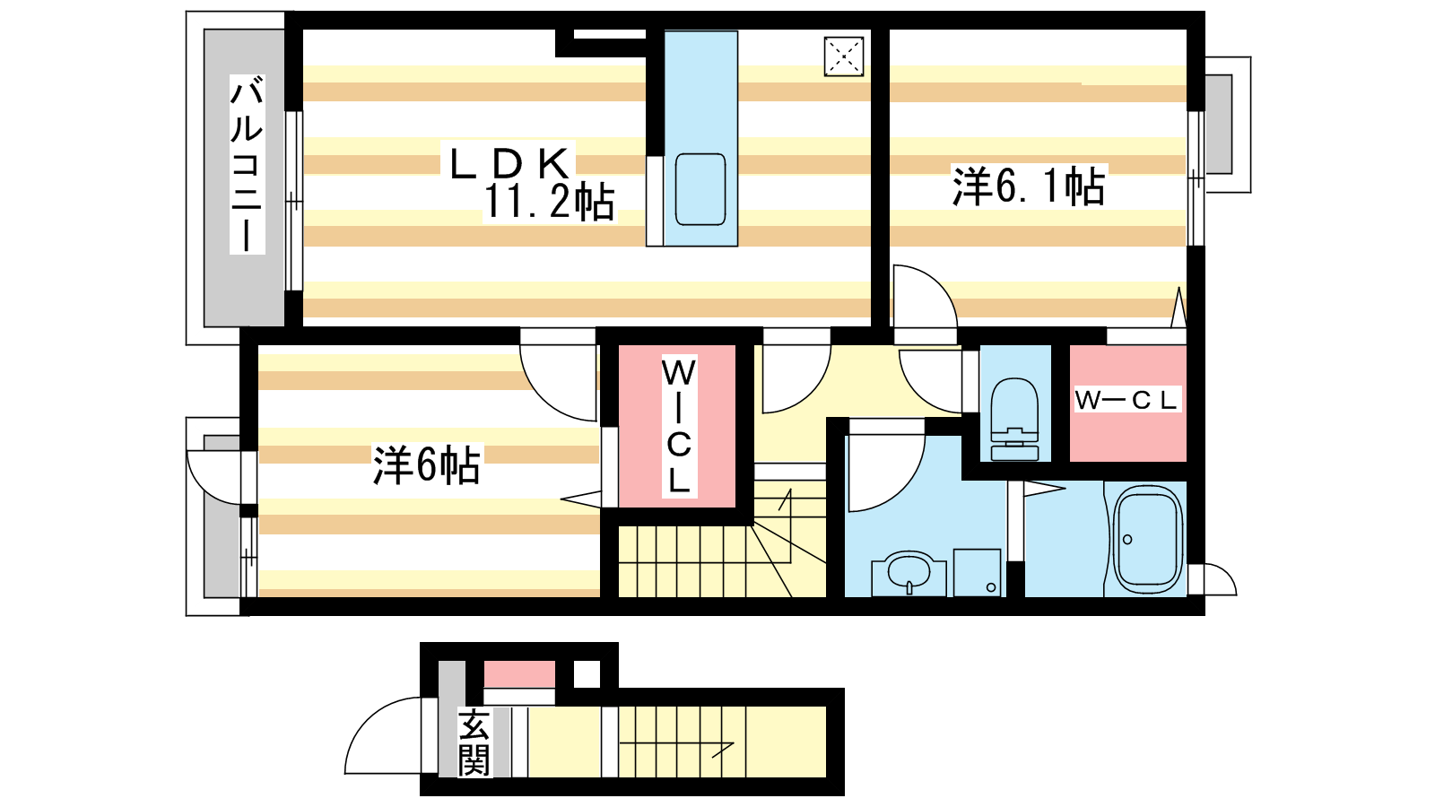 - LDK11.2帖、洋室6.1帖、洋室6帖