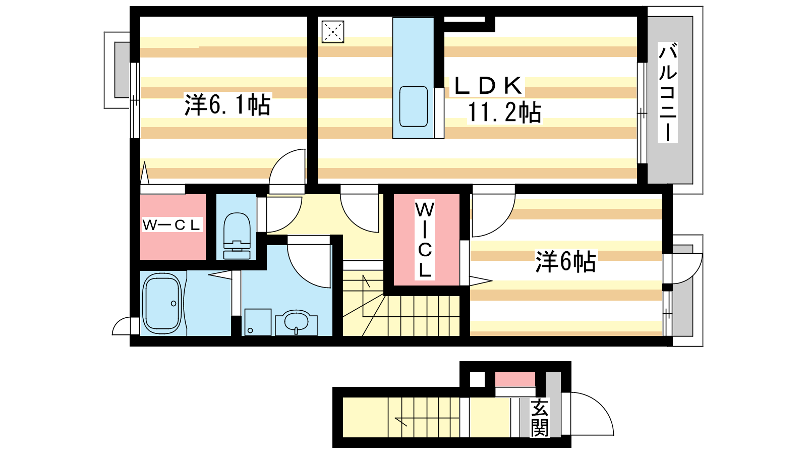 - LDK11.2帖、洋室6.1帖、洋室6帖