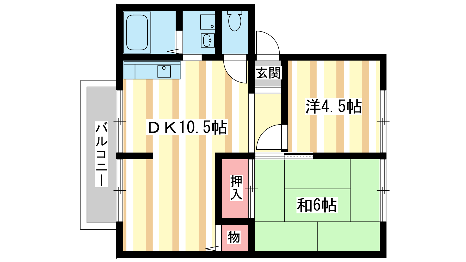 - 洋室4.5帖、和室6帖、DK10.5帖