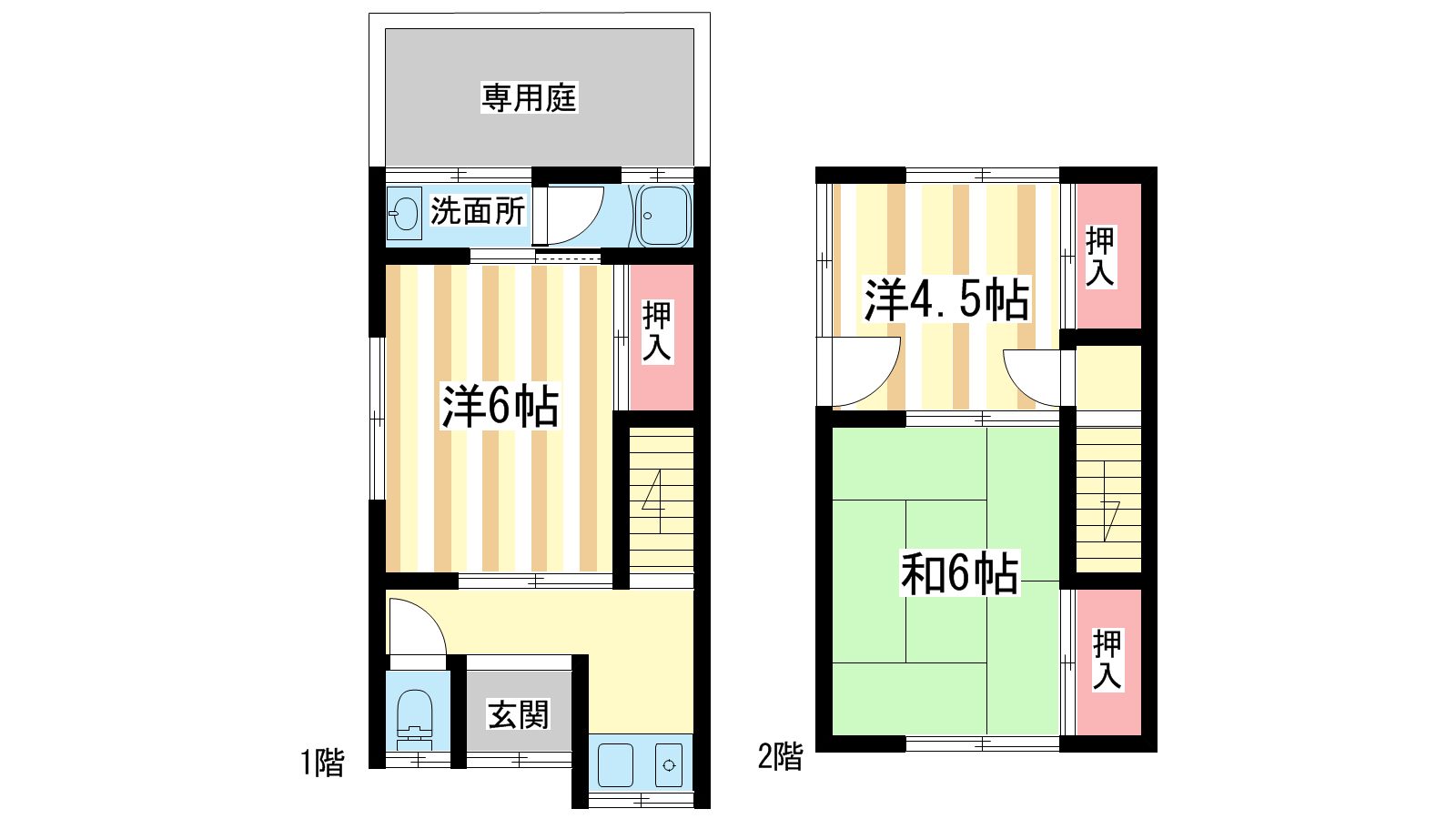 - 洋室6帖、和室6帖、洋室4.5帖