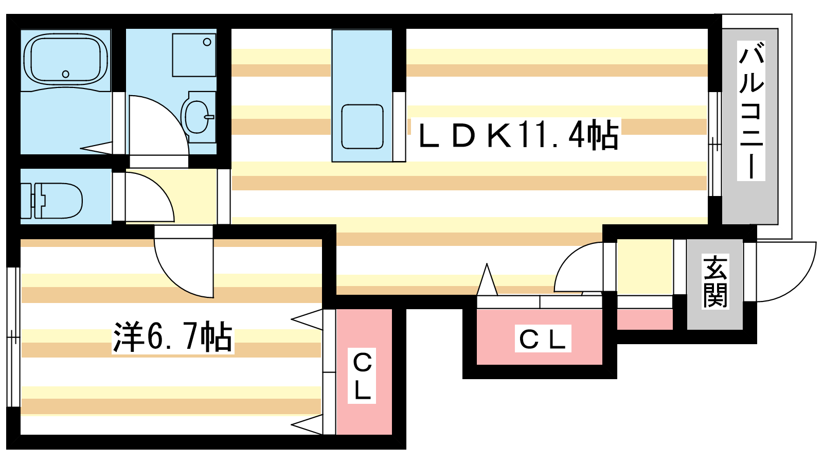 - LDK11.4帖、洋室6.7帖