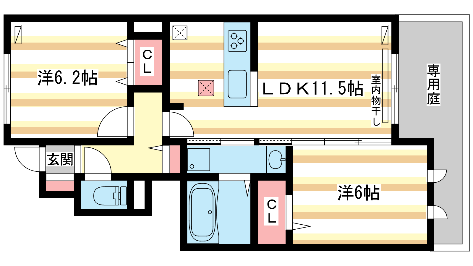 - LDK11.5帖、洋室6.2帖、洋室6帖