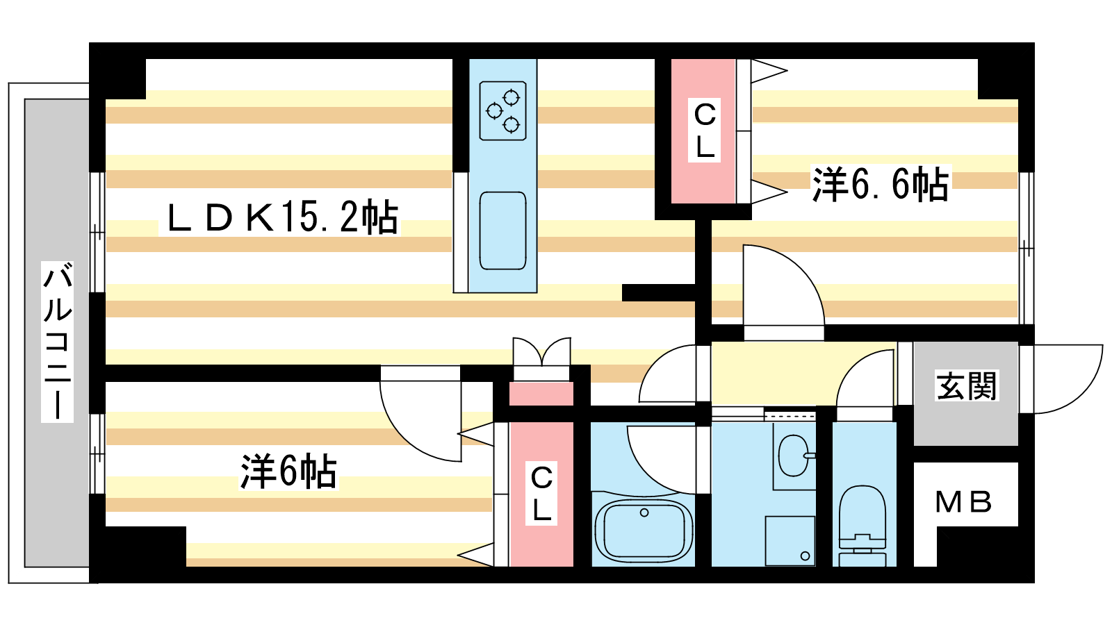 - LDK15.2帖、洋室6.6帖、洋室6帖
