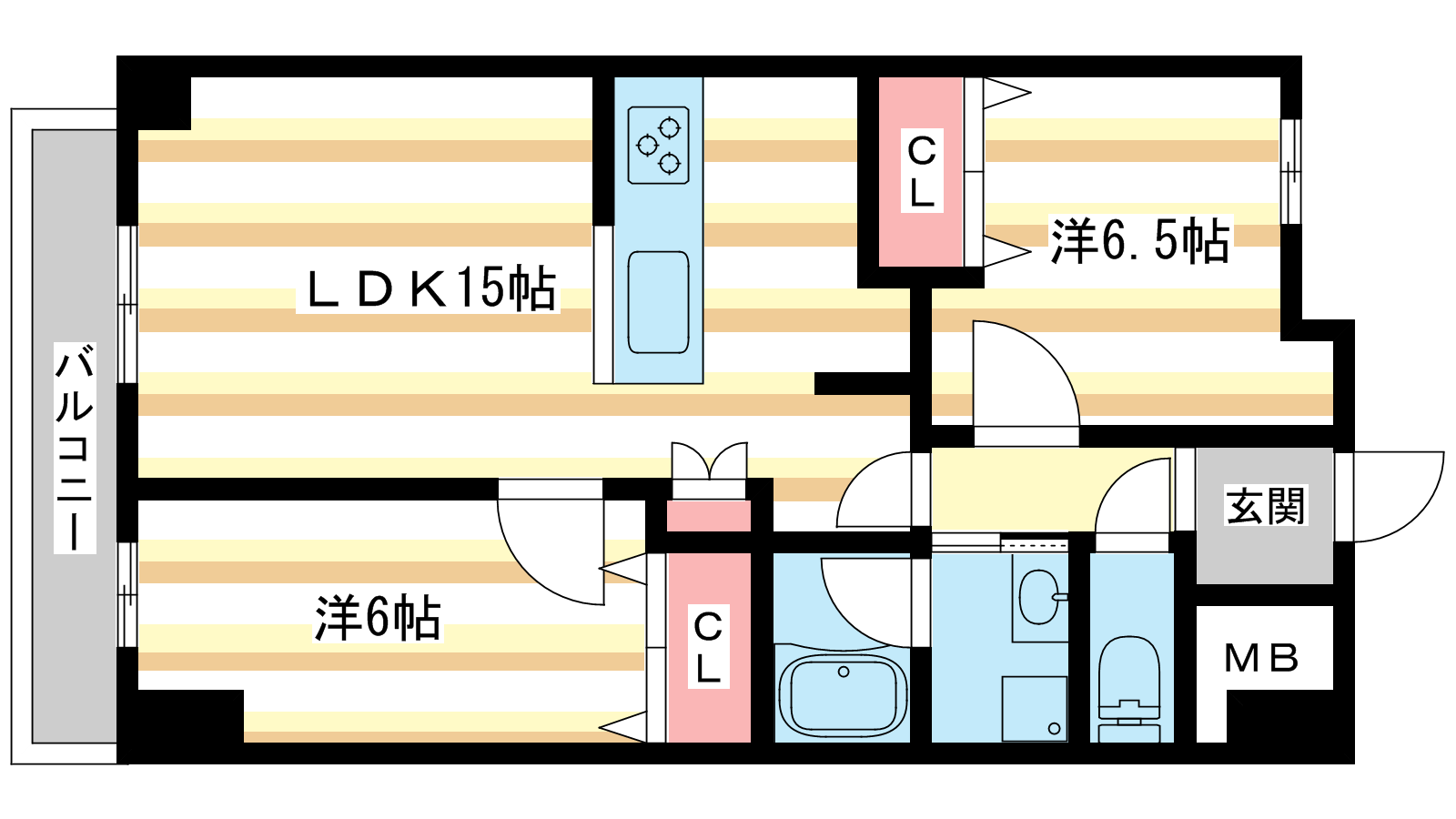 - LDK15帖、洋室6.5帖、洋室6帖
