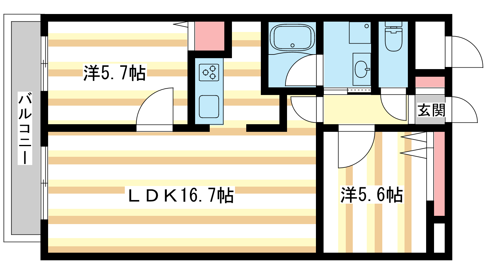 - LDK16.7帖、洋室5.7帖、洋室5.6帖
