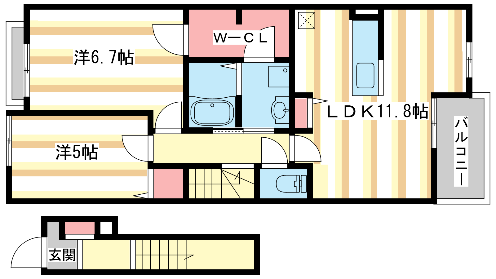 - LDK11.8帖、洋室6.7帖、洋室5帖