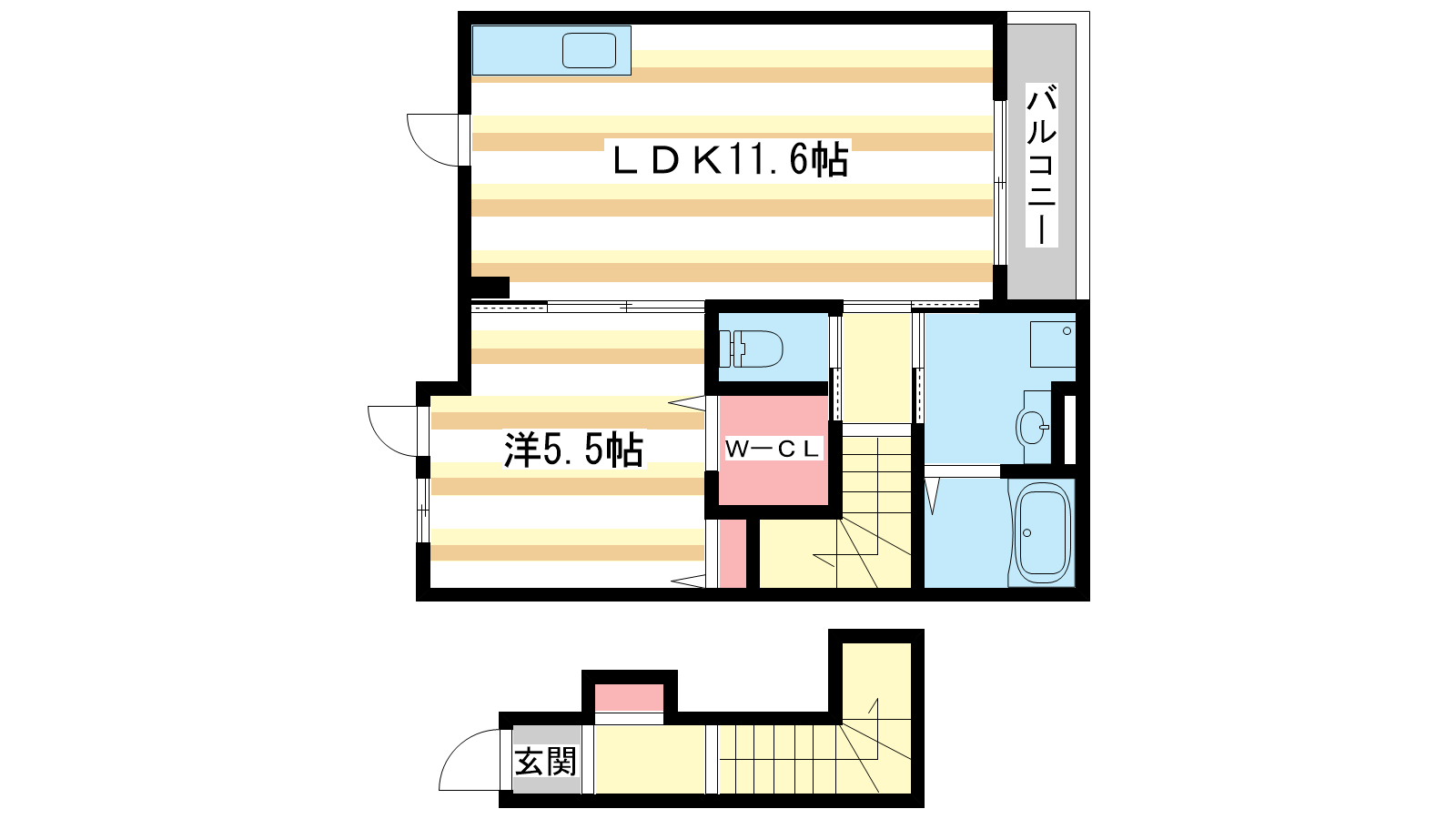 - LDK11.6帖、洋室5.5帖