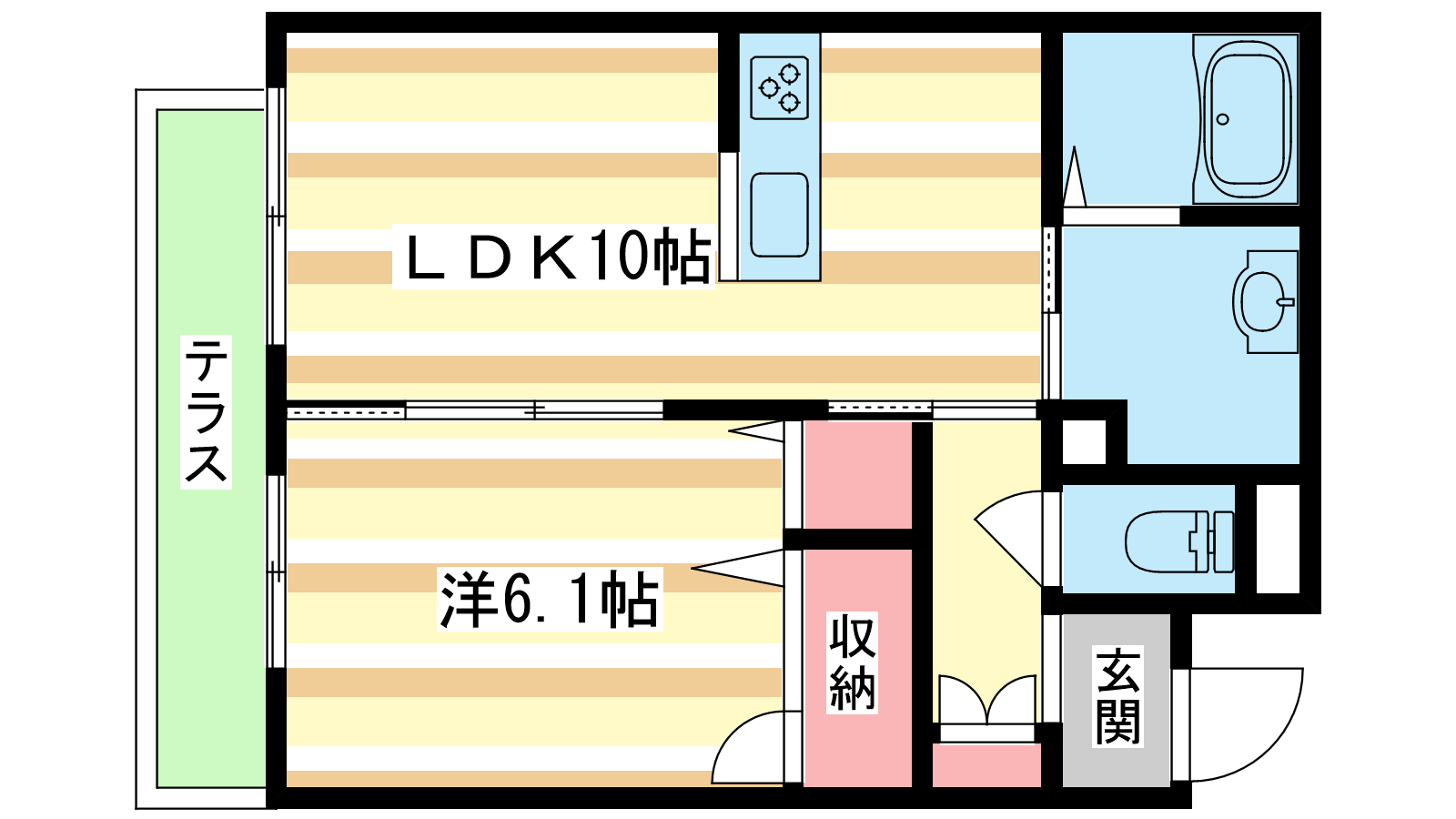 - LDK10帖、洋室6.1帖