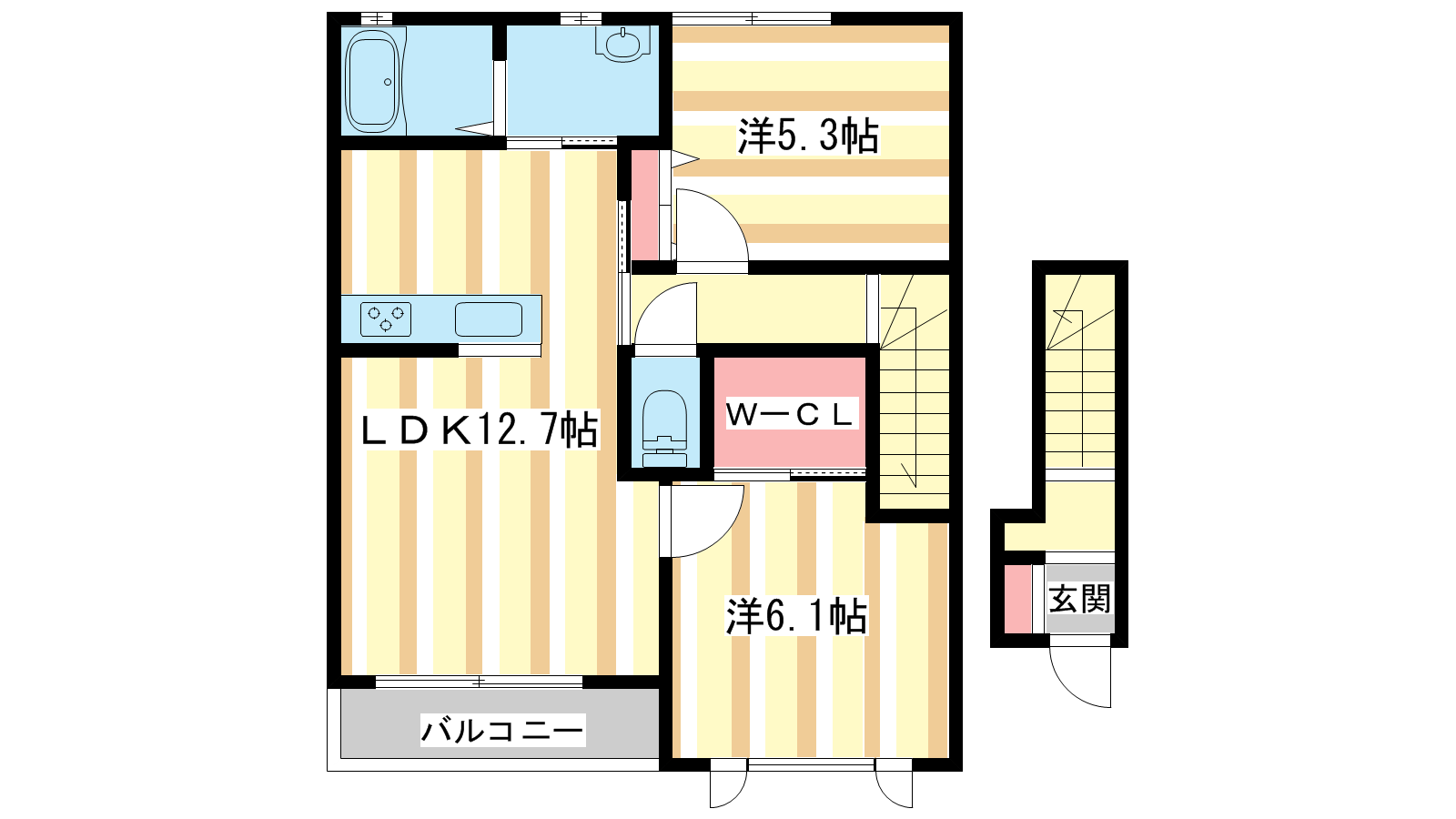 - LDK12.7帖、洋室6.1帖、洋室5.3帖
