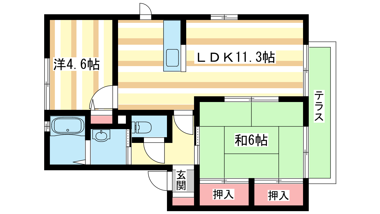 - LDK11.4帖、和室6.1帖、洋室4.6帖