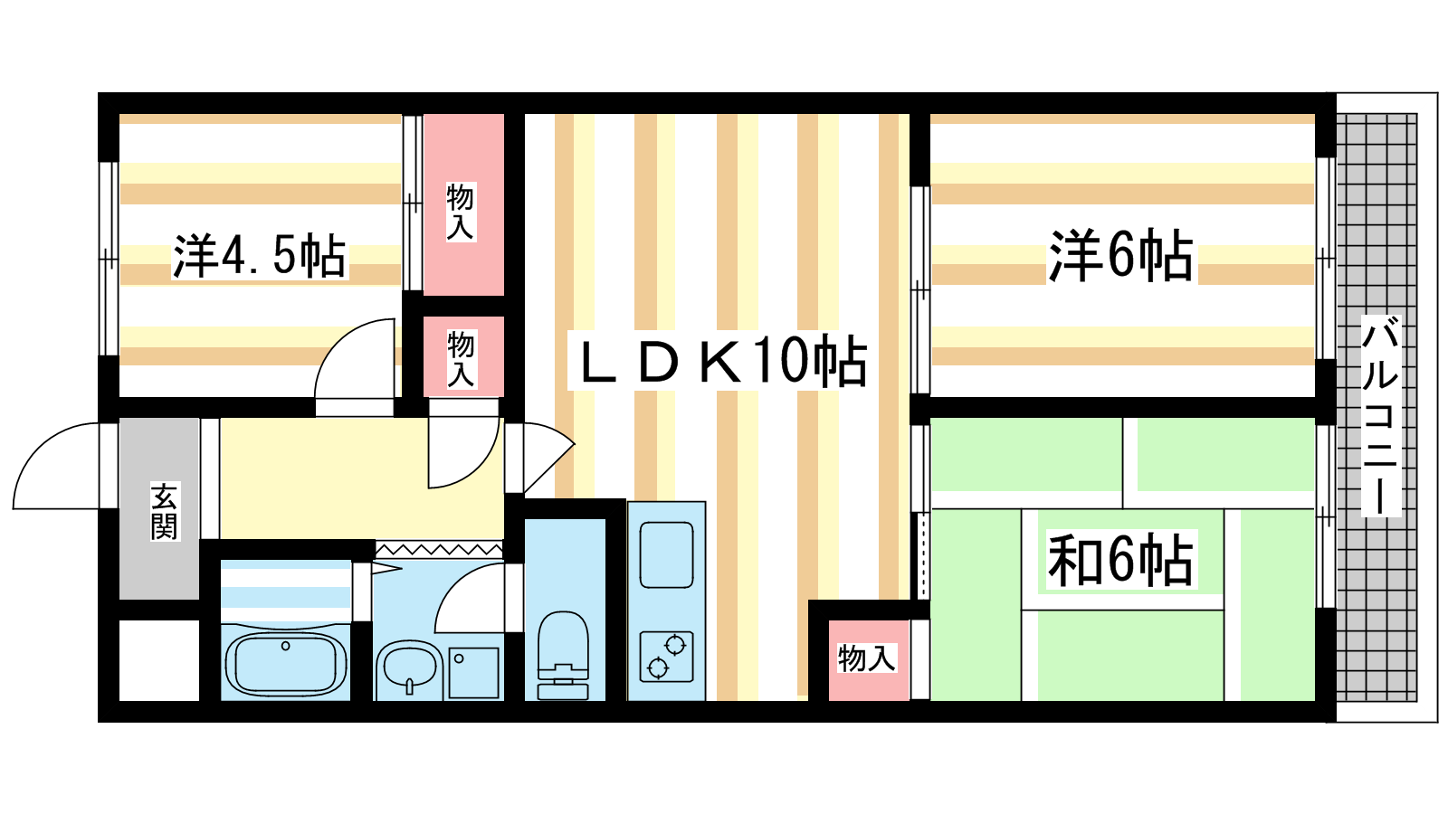 - LDK10帖、洋室6帖、和室6帖、洋室4.5帖