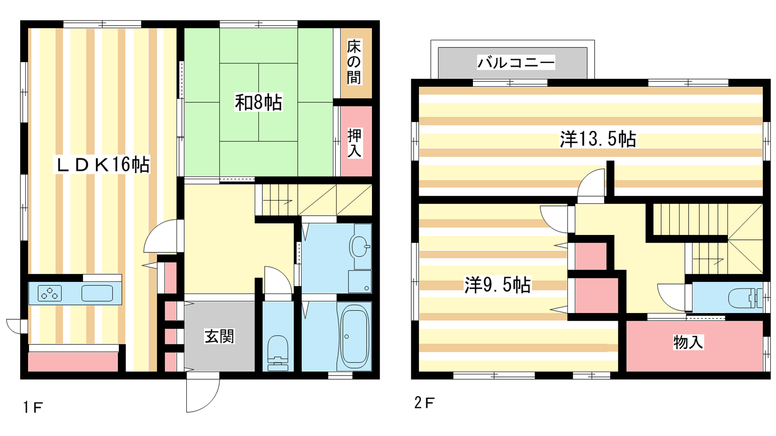 - LDK16帖、洋室13.5帖、洋室9.5帖、和室8帖